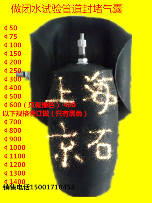 一、管道封堵气囊介绍:闭水堵适用于建筑单位下水管道的闭水检测,及管道封闭使用,属国内最新一代产品,并已通过国家专利,它是抢修管道,闭水闭粪防止污水外流,最理想的封堵工具,该产品具有省时省工方便可靠的特点,比以往粘接性同类产品具有强度高,外形美观是国内最新换代产品,经建筑单位多年来工程实践,性能安全可靠,封堵迅速,深受广大用户的欢迎,本品规格有¢50mm - ¢3000mm,其中¢600mm - ¢3000mm的大管径封堵气囊需要定货生产,我厂宗旨,让用户买的称心,用的放心。(在闭水实验中,请每楼层为一次检测不得超限)。 二、管道封堵气囊生产工艺:管道封堵气囊,是橡胶和纤维织物等高分子合成材料经高温硫化工艺制成的一种多规格、多形状的用于管道、涵洞输水、排污除淤、维修的专用橡胶产品,它可在不同管径、不同平面和不同位置上快速阻断水流,是地下管道进行输排水和淤污治理的理想工具。管道封堵气囊也叫堵水气囊或闭水堵,能简单快速的对管道水流进行阻断,增强橡胶制成,管塞特别适合对排水管道封堵、进行闭气试验、闭水试验、漏点查找等维护测试工作。